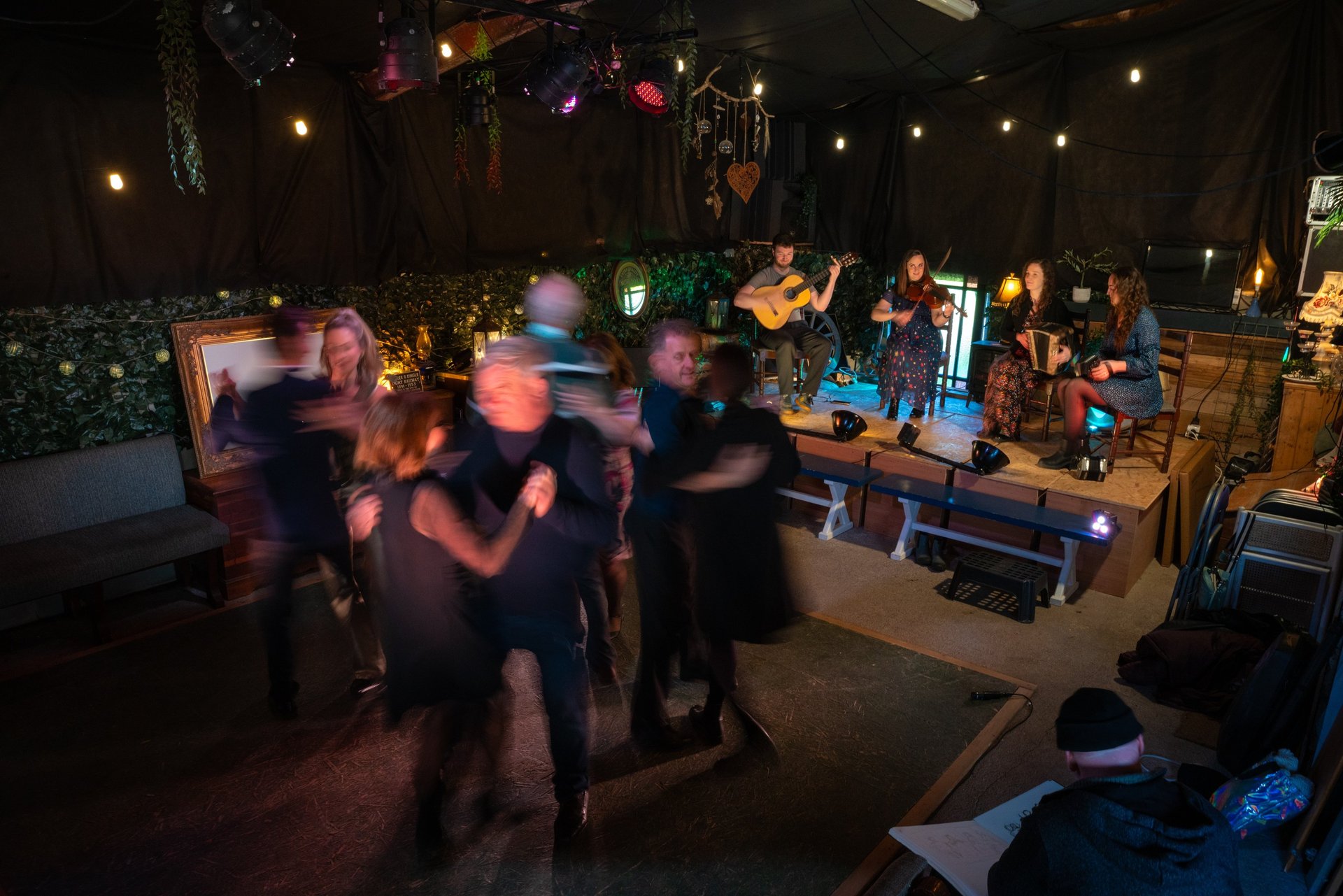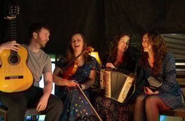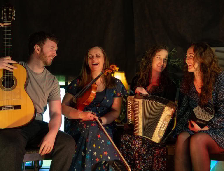 Ball Nights is a new production led by the celebrated West Kerry band Cuas, alongside the dynamic dancers of Seit Chorca Dhuibhne, poet Dairena Ní Chinnéide, and artist Domhnall Ó Bric. Together, they breathe fresh life into these community traditions. Audiences across Ireland will experience first-hand the wild energy and distinctive spirit of West Kerry — singing songs, joining the dancing, and becoming part of an immersive celebration of place and culture.