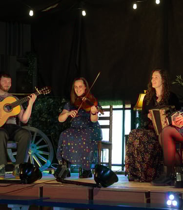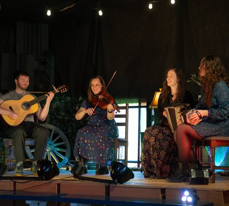This 90-minute, multi-disciplinary performance features energetic slides and polkas, timeless traditional songs that span centuries, and captivating waltzes that invite audience participation. Art and poetry inspired by the five figures of Seit Chorca Dhuibhne are seamlessly interwoven, creating a rich tapestry of storytelling through sound, movement, and image.